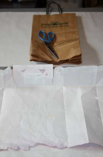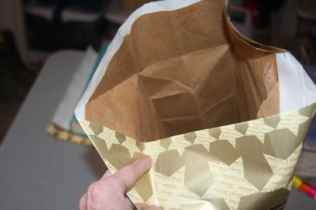 Luego puso la bolsa de papel sobre el papel y pegado con un palo de pegamento. Usé cola blanca en las asas porque quería más fuerza allí y luego sometido a un par de libros para secar.