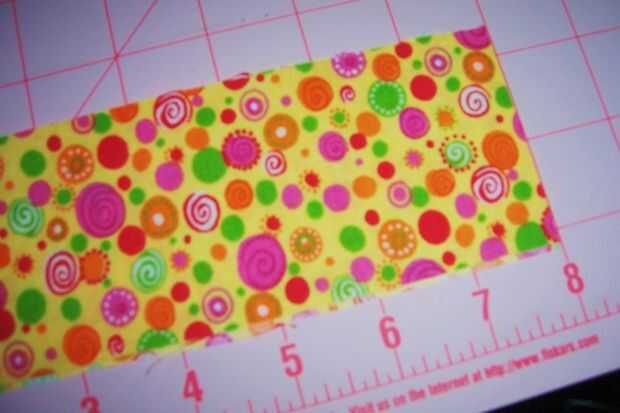 Doblar el panel inferior de la tela por la mitad a lo ancho, así que mide 8 pulgadas por 2,5 pulgadas, doblados (imagen).