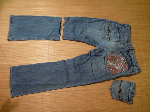 he creado una versión de este vestido para una amiga. No estoy seguro que el creador es, o donde se puede comprar el original, pero sin embargo, esta fue la inspiración.Paso 1: empecé con una camisa de denim y una gran pila de pantalones vaqueros.Pas