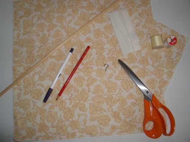 Es mejor utilizar una luz a peso medio cortina o tela de decoración, pero haría un tejido pesado. Unión de lino es ideal. Usted puede encontrar probablemente un remanente en una tienda de tela de la decoración. Prefieren lino o algodón de fibras sintéticas o artificiales, pero un poco de poliéster en la mezcla ayuda a proporcionar fuerza. Utilice un hilo correspondiente, es decir. No utilice un hilo de poliéster para coser fibras naturales, se derriten cuando intenta presione su trabajo. En este diseño, hay un "ojal" circular a través del cual va el gancho colgante, y esto se presiona agradable y plana si se utiliza una plancha de vapor sobre una tela de lino o algodón.