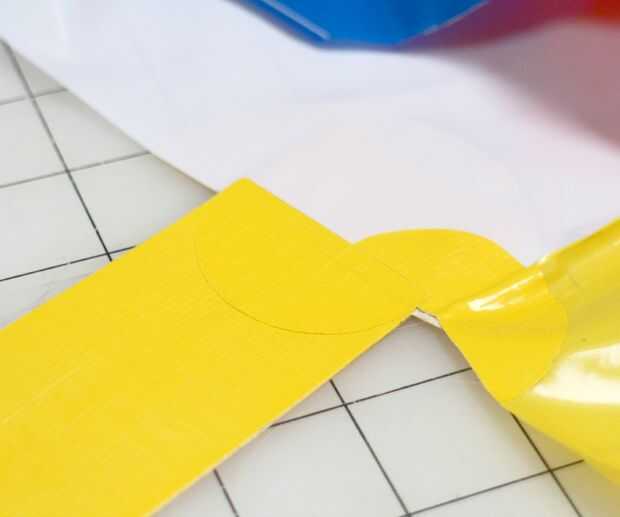 Vuelta la bolsa y colocar uno de los pequeños círculos de la mitad para que la cara redonda es en la correa y el borde plano superpone la bolsa aproximadamente 1/4".