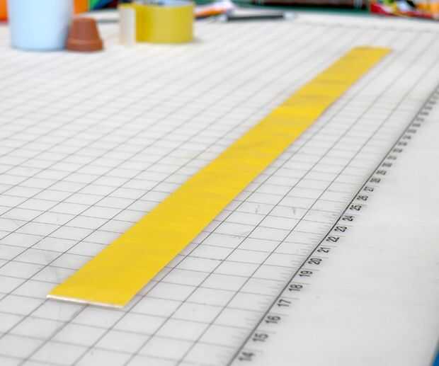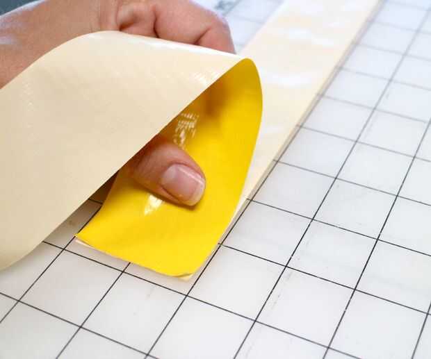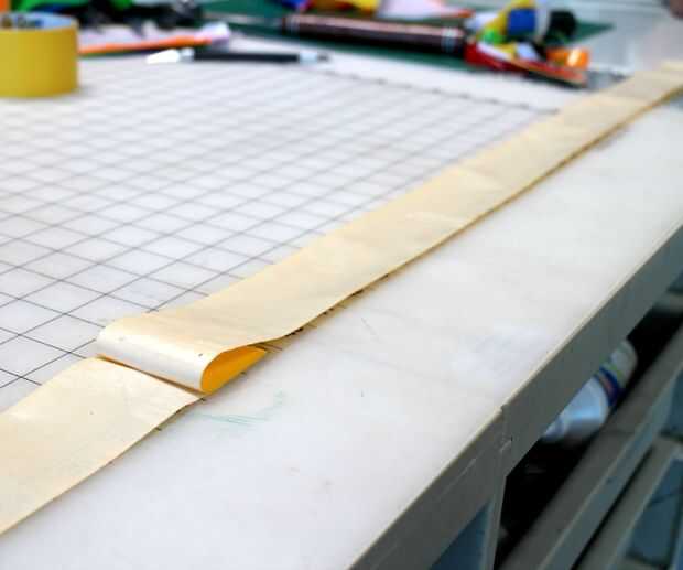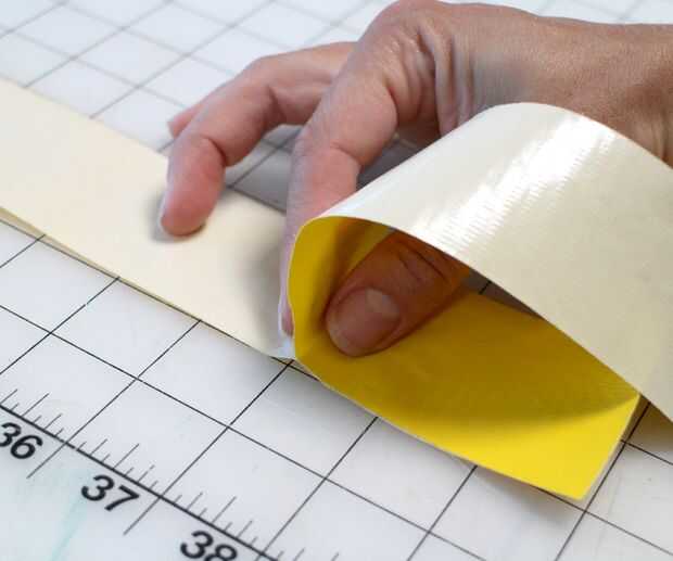 Pegar con cuidado las dos longitudes de la cinta junto, espalda con espalda.