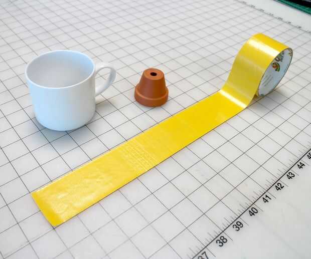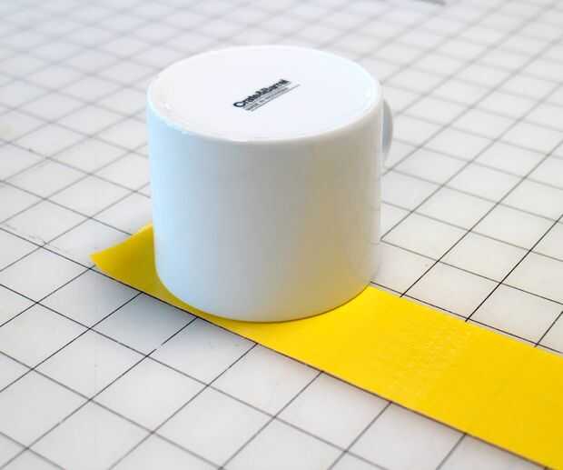 Usando el mayor de los dos objetos circulares (aprox. 3" de diámetro) y un cuchillo del exacto, cortar 4 círculos media cinta de conducto. A utilizar éstos para asegurar la correa al bolso.