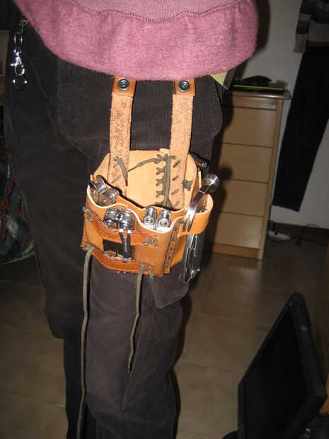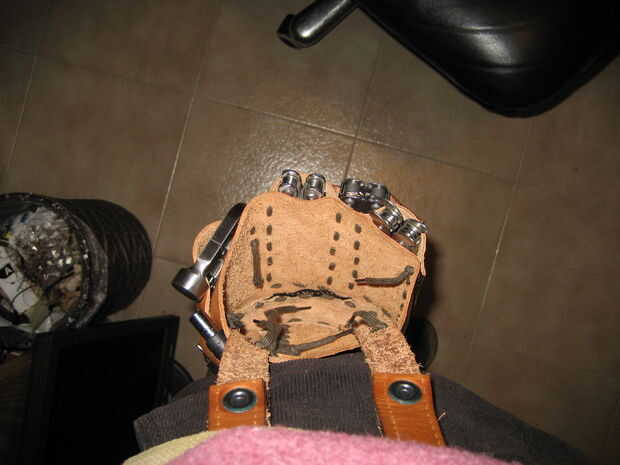 Ahora ya está hecho. Lo uso para sostener 3 alicates Multiherramientas, un martillo multiherramienta y un set de destornillador. Cabe muy bien!