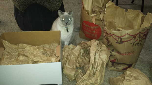 7. (Una vez más, el gato es opcional, estar dispuestos a sacrificar algunas de sus bolas de papel para darte paz, si usted decide usar uno).