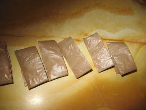 Cortar la bolsa en tiras dondequiera a partir de.5 a 1 pulgada de ancho. Esto no tiene que ser perfecto, y no ' tienen que ser coherentes, como siempre que las tiras son lo suficientemente densas como para mantenerse intacto y fina lo suficiente como para trabajar, como en la tercera foto.