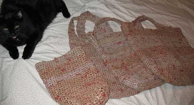 Una vez terminados los mangos, continuar ganchillo al borde de la bolsa, luego acabado apagado, y listo.