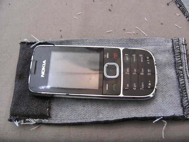 • Ajuste el teléfono sobre la tela doble sobre el teléfono y marque donde cortar y coser.