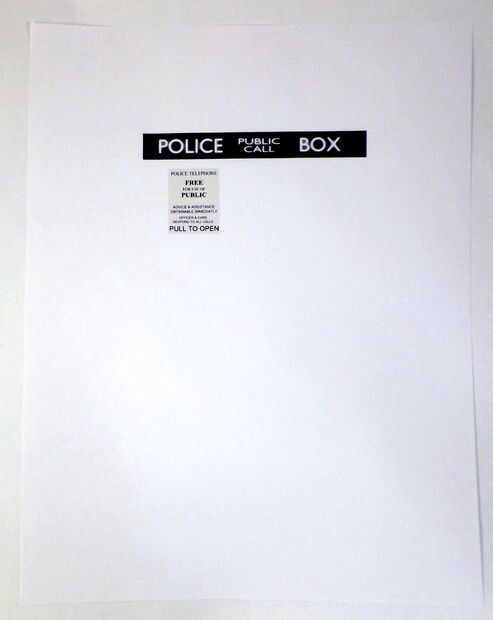 Para hacer los signos, yo copiar y pegar los signos de la imagen de la Tardis que encontré en un nuevo documento e imprime (en la escala derecha). Para el "público llamada caja de policía" a la escala correcta, debe ser cerca de 11 cm de largo y 1,2 cm de altura, y la muestra de panel de puerta a la escala correcta, debe ser aproximadamente 2.3 cm x 2,3 cm. Entonces, para hacer los signos durables, poner una capa de cinta de envío sobre cada signo. Corte cuidadosamente los signos con las tijeras.