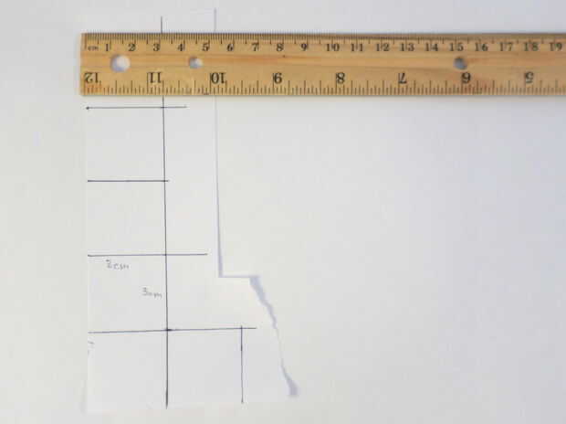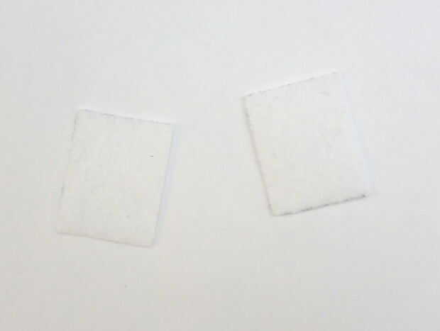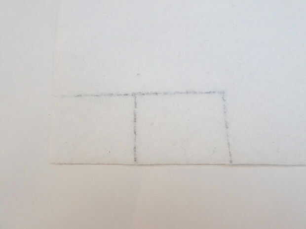 Para hacer la parte blanca de las ventanas, cortado dos rectángulos de fieltro blanco que eran cada 3 cm por 4 cm. (Marqué el fieltro con una regla/pluma para que sea más fácil de cortar hacia fuera).