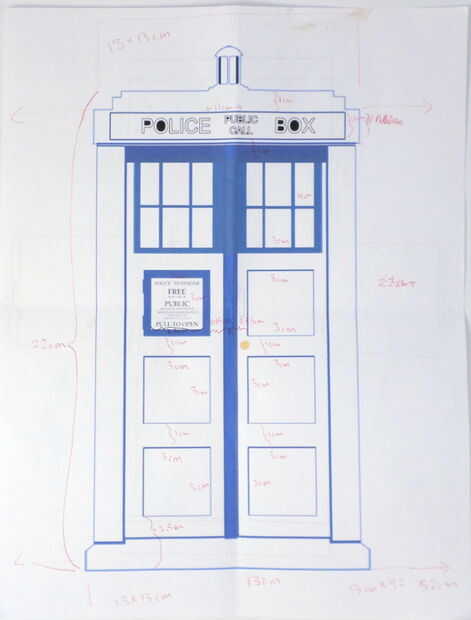 Para averiguar cómo el tamaño y el espacio todo en la parte delantera de la Tardis, primero encontré un dibujo del Tardis en línea (