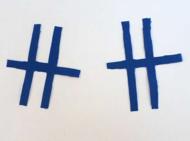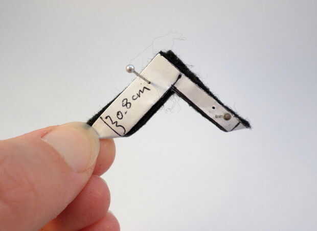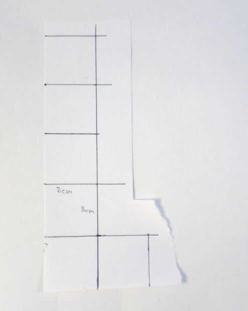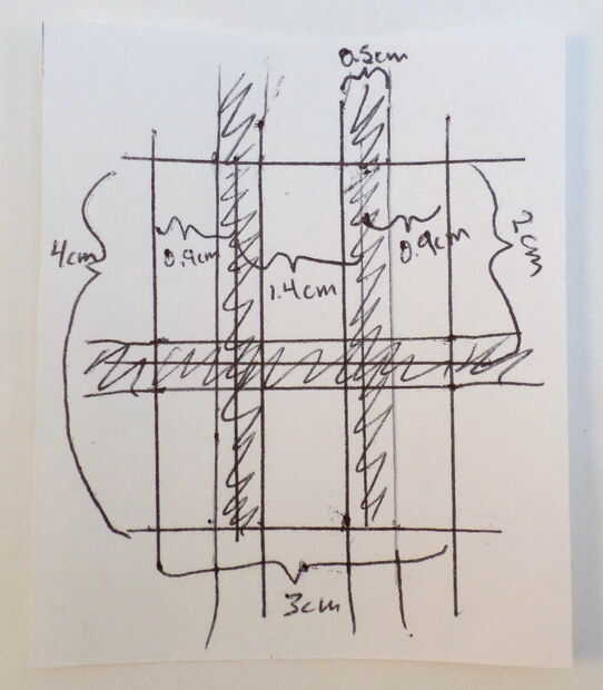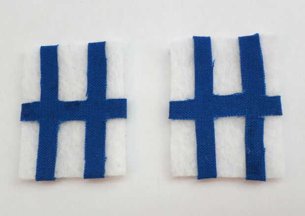 Ver las fotos de cómo planeado el dimensiones/tamaño de las piezas en las ventanas (los planes se basaban en un Tardis dibujo). La ventana general debe ser 3 cm largo por 4 cm de altura. Una banda azul horizontal debe pasar a través de él por la mitad (centrado en 2 cm de la parte superior/inferior), y dos azules franjas verticales cada centrado 0,9 cm de los lados izquierdo/derecho. Ver las fotos para más detalles. Las bandas deben ser de 0,5 cm de ancho, se pueden utilizar cinta azul o más de la tela azul que utilizó para el cuerpo de Tardis (esto último es lo que hice). Para cortar las bandas de la ventana de la tela azul, cubrió mis planes (a escala) a la tela y el corte a lo largo de las líneas, ver las fotos. Deje algunos extremos extras en las bandas para que se les pueden envolver alrededor de la parte posterior de la ventana.