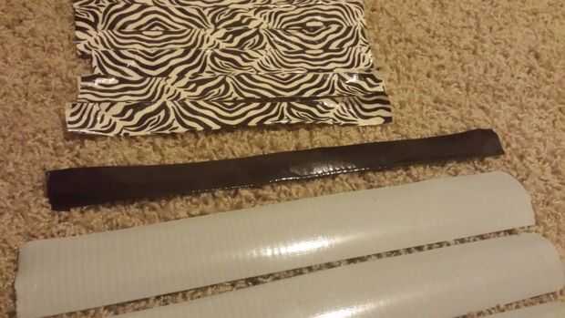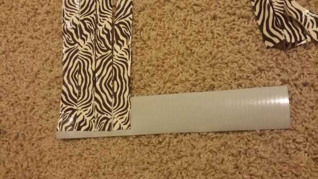 me inspiré por conducto cinta tote el post de doormatyay, pero no copio su post, este es un método completamente diferente de ella.Paso 1: Crear el primer conjunto de tiras Cortar una pieza si el conducto es de 1' de largo de la cinta y coloque el la