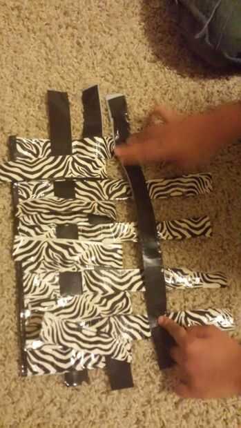 me inspiré por conducto cinta tote el post de doormatyay, pero no copio su post, este es un método completamente diferente de ella.Paso 1: Crear el primer conjunto de tiras Cortar una pieza si el conducto es de 1' de largo de la cinta y coloque el la