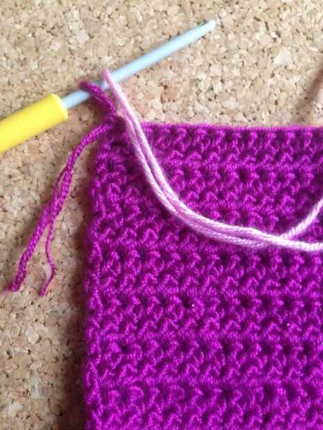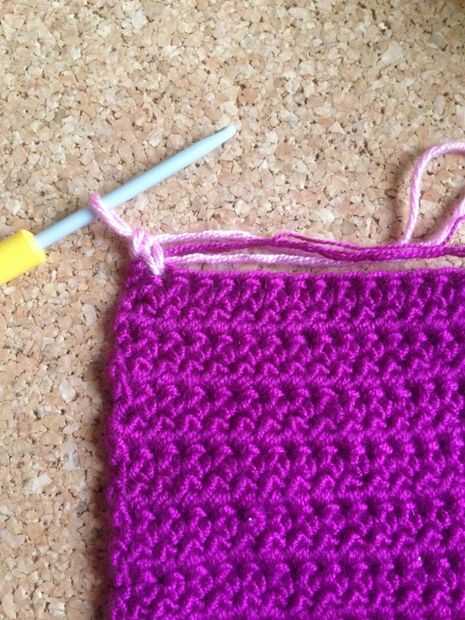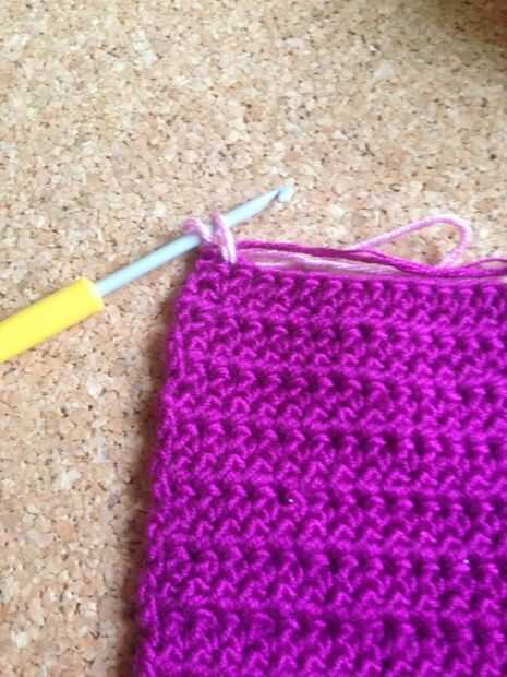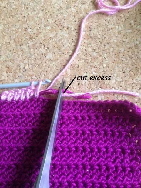 Ahora hice el mismo ganchillo solo de ambos lados a lo largo de una contrastadas de color rosa. Mientras la bodega rosa los dos extremos a lo largo de crochet sobre él y cortan, si es demasiado largo. Ver última imagen