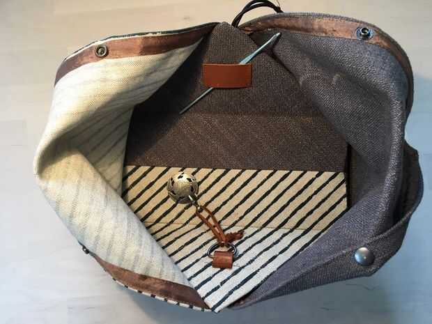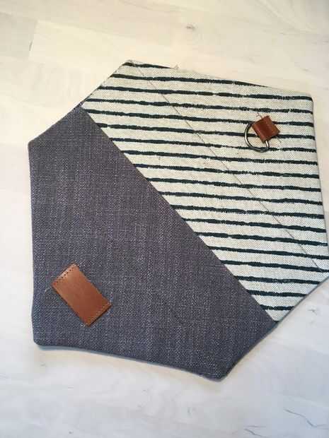 Para ayudar a mantener la forma de la bolsa y añadir loops para la organización, cortar tres trozos de cartón (1 rectángulo y el triángulo 2 y cubierto con tela. Los triángulos se pliegan para permitir que la bolsa para cambiarse por la forma de "bola" a la tradicional bolsa.