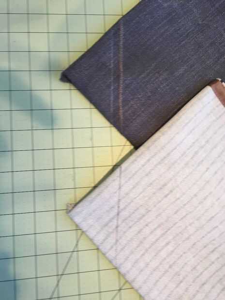 Quería añadir interés visual con algún escarpe de arpillera que tenía y en una de las piezas de tela cosidas primero. Luego limpiado las costuras por plegable encima y cubrir con la cinta de costura (duplicación en las juntas hubiera sido demasiado voluminosa).