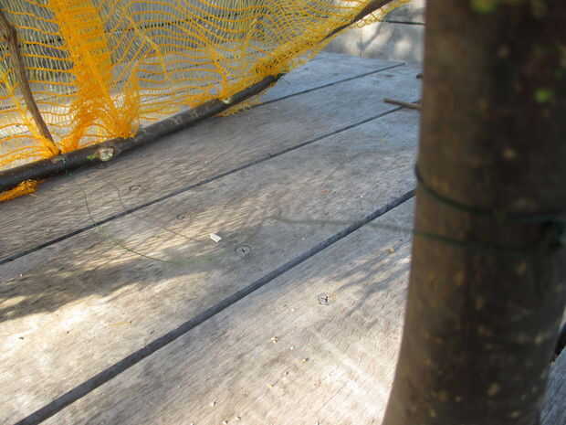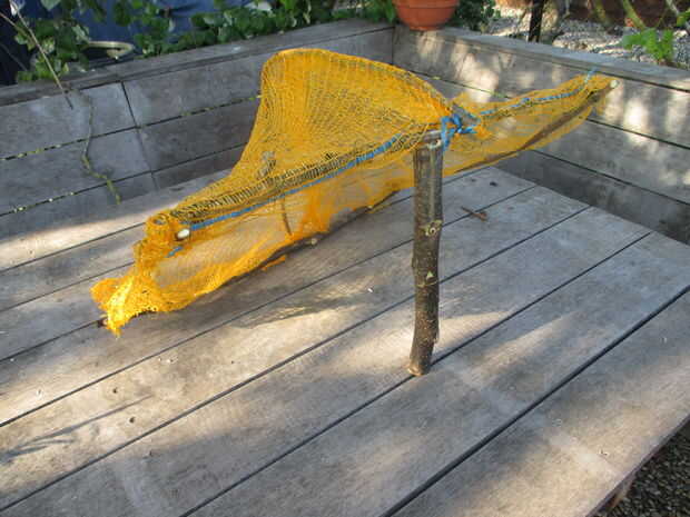 O con algunas ramas el saco de red puede utilizarse para construir una trampa de caja simple. (esto me ha pillado un montón de palomas)