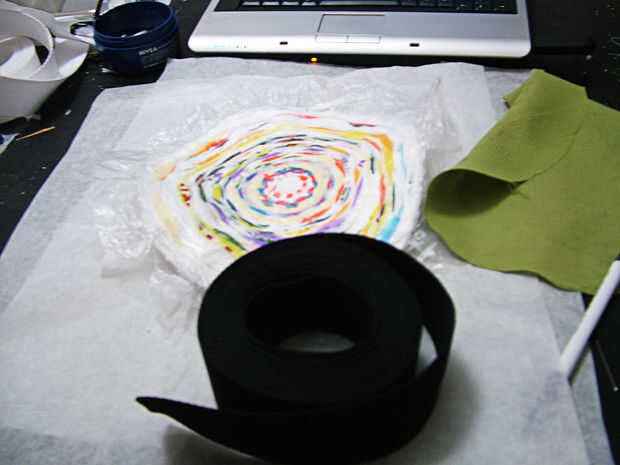 Poner un fino ver a través de la bolsa de plástico en la parte superior del tejido círculo y lugar para hornear papel encima de ellas.