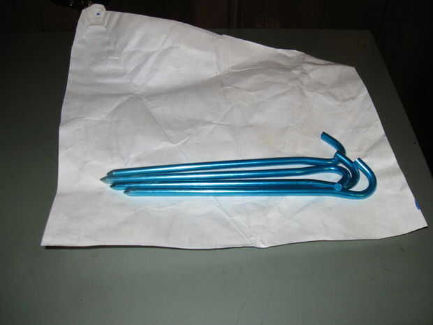Y esas son las estacas de tienda de campaña que se llevará a cabo en el saco terminado.