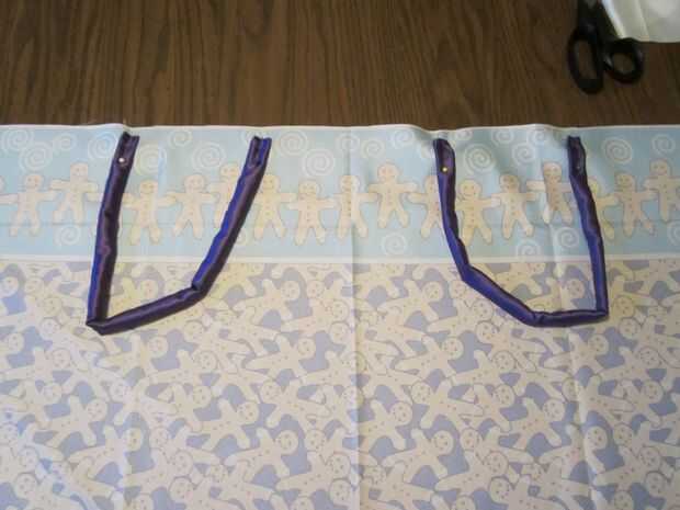Cada extremo de la manija 1/4 de pulgada lejos del borde de la tela grande, 3,5 pulgadas de distancia del centro del perno.