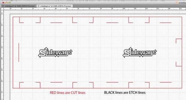 Usted necesitará un pedazo de material de 7 "x 16". Esta plantilla es para un cortador de VersaLaser: líneas rojas son líneas de corte, líneas negras (el logo) están grabadas. Cambiar el color y grosor de las líneas para su tipo de cortador del laser.