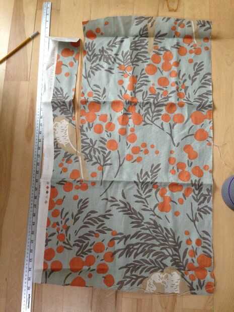 Medir el ancho de tu alfombra (o la longitud de su estera enrollada) y agregar 3" para las costuras y acabados. Si quieres el top 4" o su alfombra que sobresale de la bolsa como la mía, (para que sea fácil entrar y salir de la bolsa) puede hacer que la longitud de la tela más corta o esperar hasta llegar al último paso para decidir.