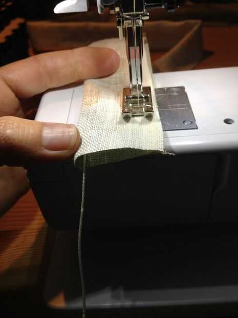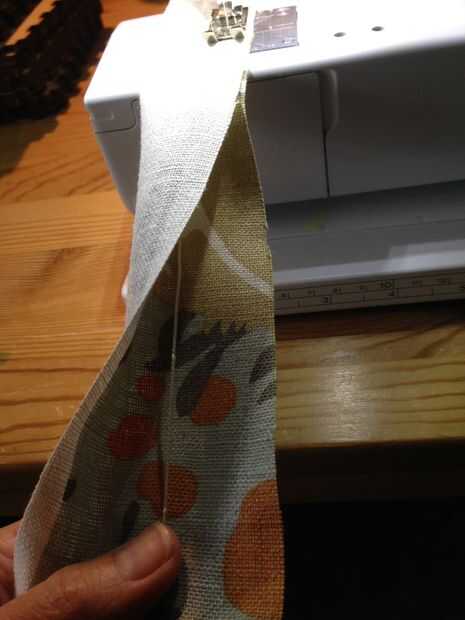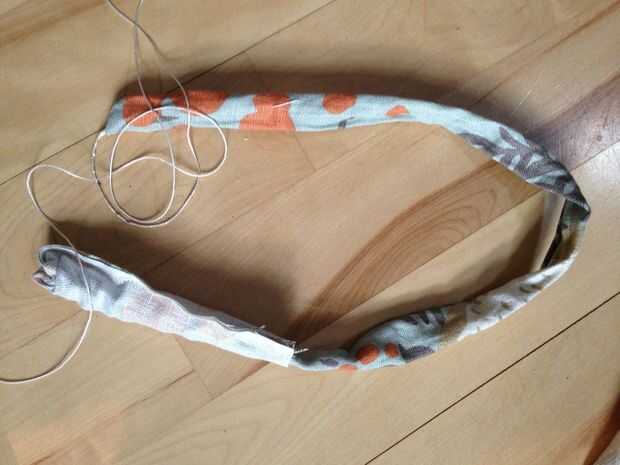 Doble a la tela en maneras de longitud media (buena contra derecho) con la cadena hacia atrás en el pliegue. Coser en la parte superior del tubo para asegurar un extremo de la cuerda para el tubo. Desde el mismo extremo del tubo, coser una costura de 1/4" abajo del lado del tubo, asegurándose de mantener la cadena de la costura.