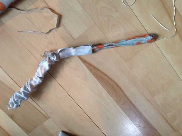 Si ha agregado una cadena, usted puede ahora tire suavemente de la cuerda para empezar a girar el tubo en sí mismo. Continuar hasta que esté completamente hacia el lado derecho hacia fuera. Corte la cadena.