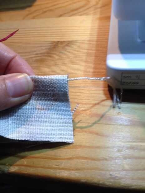 Con el lado bueno de la tela hacia arriba, coloque un trozo de cuerda por la mitad, que es más largo que la tela y se traslapa ambos extremos. Nota: utilizando la cadena es opcional, pero me resulta útil sobre todo al girar tubos pequeños (la cadena se utilizará para ayudar a su tubo de correa buena parte hacia fuera después de coserlo).