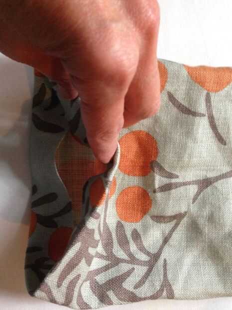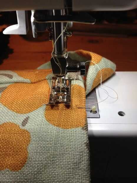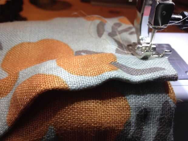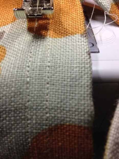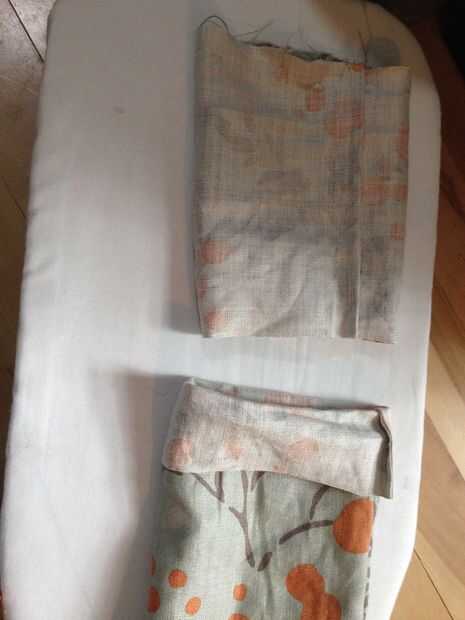 Para mi longitud del bolso, salí de aproximadamente 4" de mi expuesta para que sea más fácil entrar y salir la estera la estera. Corte su bolso dejándolo 2" más largo que su tamaño deseado, acabado. Entonces doble de 1" de tela para el interior del tubo (mal lados juntos) y coser una costura de 3/4" y dejar a un lado.