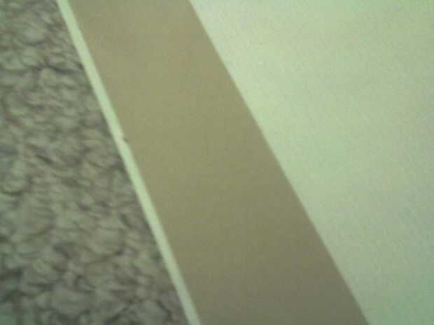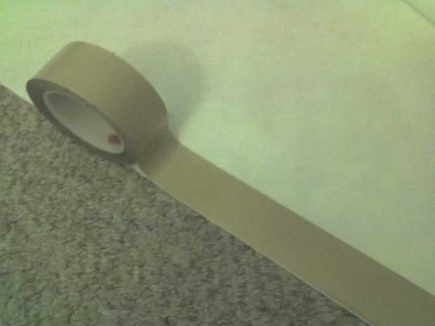 Con cuidado, coloque la cinta en la esquina y correr la cinta hasta la marca. Tener cuidado porque esta cinta es algo pegajosa. No es una mala idea dejar una brecha muy pequeña entre la cinta y el borde para evitar que la cinta sobre la superficie de trabajo.