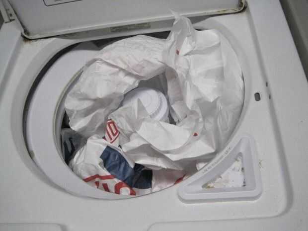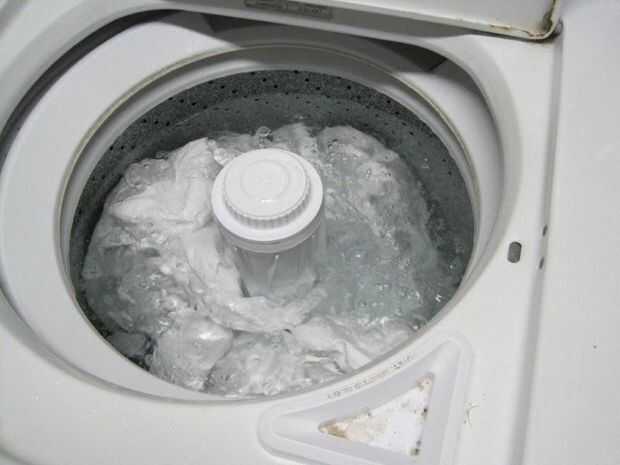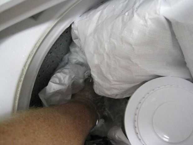 Nota importante: no deje que la máquina girar! (Mina se arrastró cerca de 2 pies antes de que pudiera detenerlo!) La bolsa de tyvek retiene el agua, y el ciclo de centrifugado podría rasgar la bolsa o causar daño a su máquina.