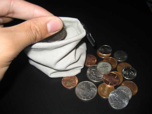 Ahora, toma ese montón de cambio y empezar a colocar cada moneda en la bolsa lentamente uno por uno. Este es el paso más importante. Tenga mucho cuidado, tómese su tiempo y no se apresure. Ha llegado demasiado lejos al meterse todo ahora...