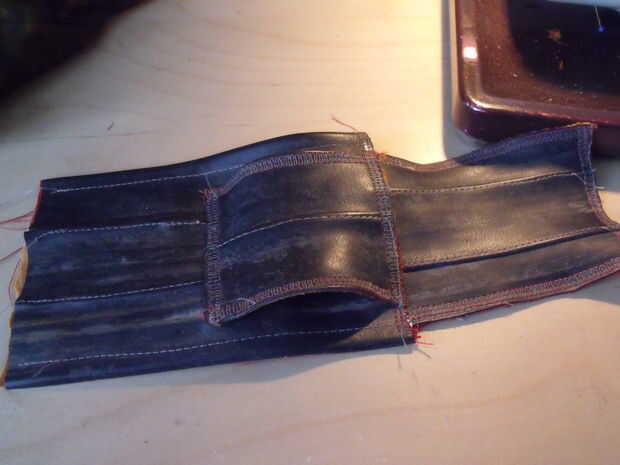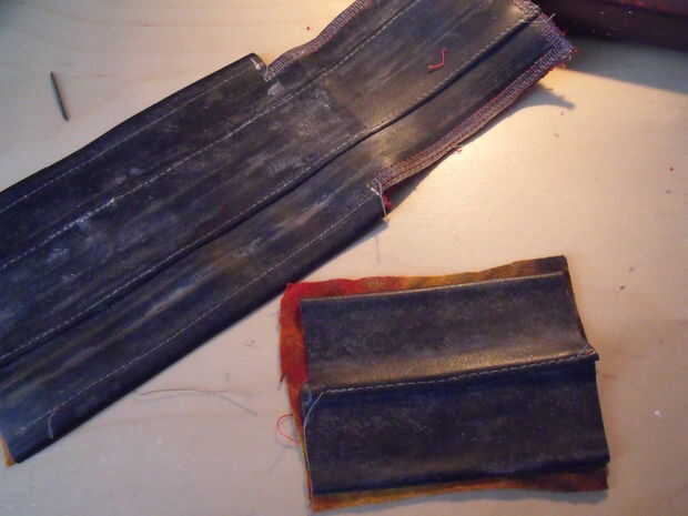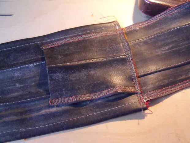 Cortar dos trocitos de tubo. Reforzar la parte trasera con la tela. Acabado dos caras opposith con zig-zag. Stich te otros lados en la parte posterior de la bolsa. Dejar un pequeño espacio para el cinturón