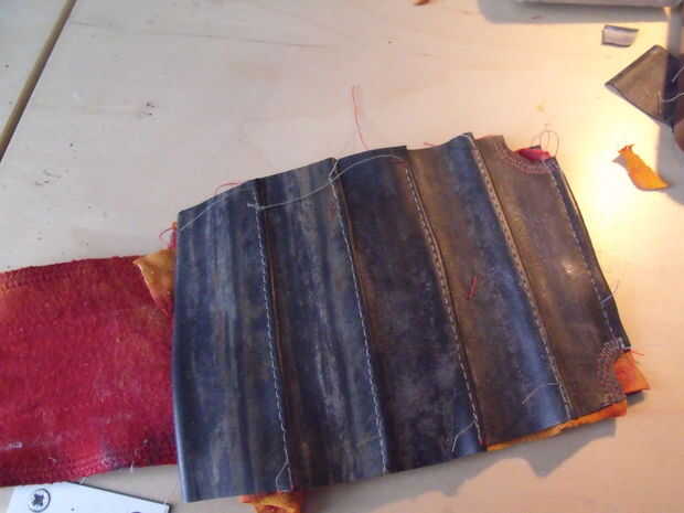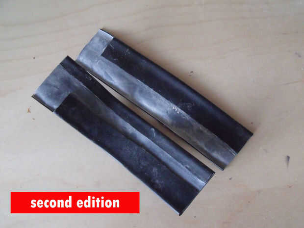 Usé 2 trozos de neumático platabandas, no cortar por la mitad pero casi todo el ancho. Las esquinas se cortan para el siguiente paso