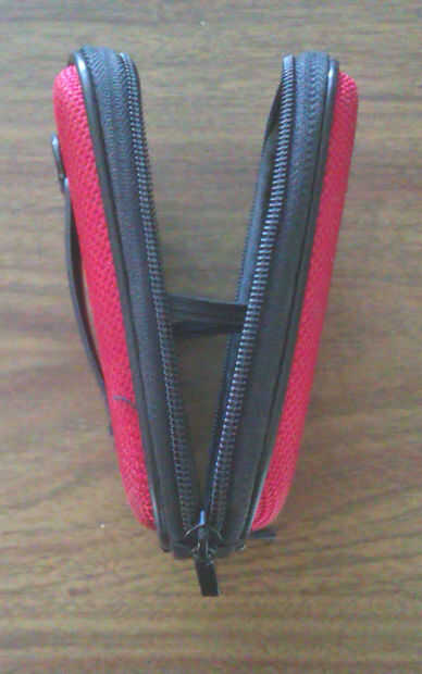 Este es un caso de cámara semi firme desde el almacén del dólar. Trate de asegurarse de que tiene dos cremalleras así que usted puede con cremallera para los auriculares. Si no, siempre podría conseguir una caja con una cremallera y hacer un agujero separado para los auriculares.