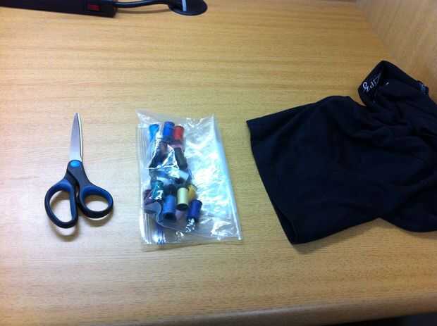 Una camiseta vieja (cuanto más grande mejor, usé un XL que encontré en una tienda por $1)