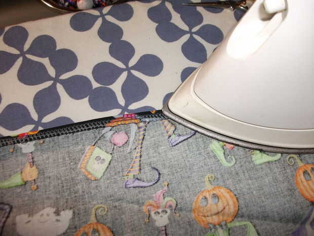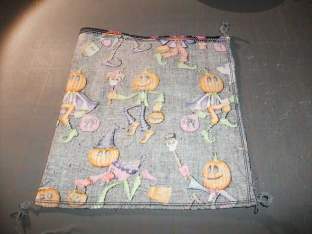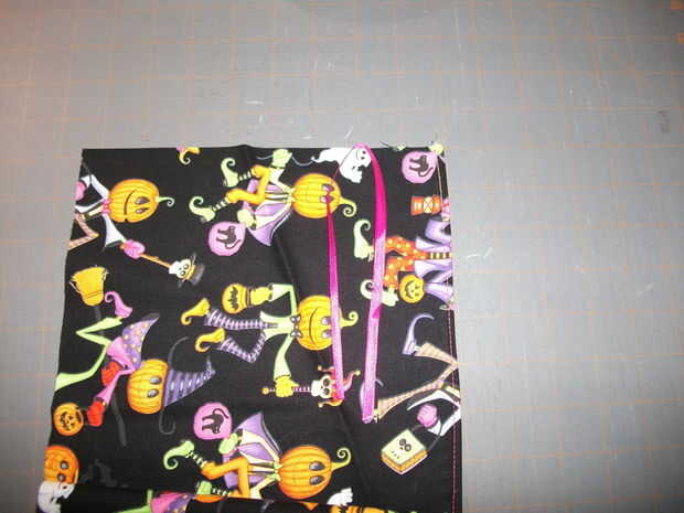 Un dobladillo estrecho a lo largo del lado largo de la tela - este será el borde superior.