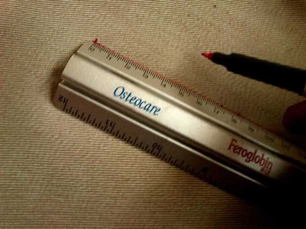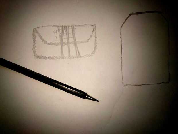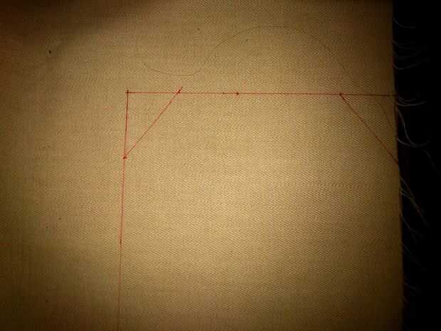 Luego medir algunos aspectos (yo escogí un rectángulo 15 x 28 cm) y esbozar la forma en el material (creo que es una forma de utilizar cuero, pero no tengo, así que tuve que usar un lienzo).