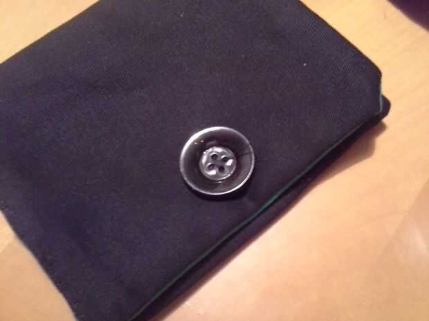 Doblar su cartera y averiguar un lugar agradable para un botón grande y jugoso. Fui con el negro porque tenía a la mano. Esto ayudará a mantener la bolsa cerrada.