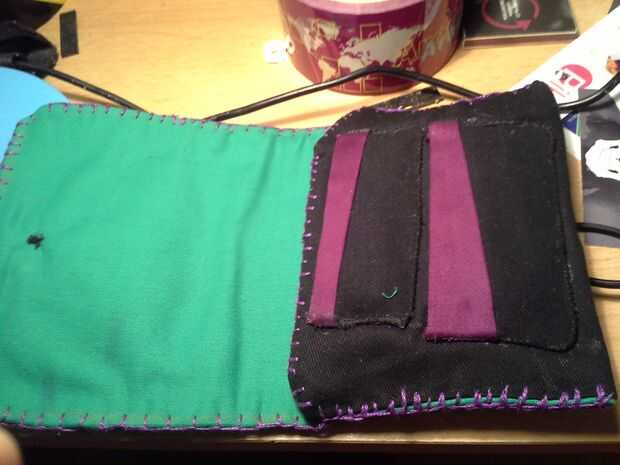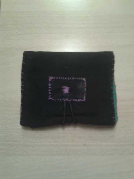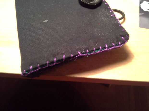 Decorar los bordes de la bolsa con un hilo más grueso. He utilizado el morado. No te olvides de comprar una aguja más grande.