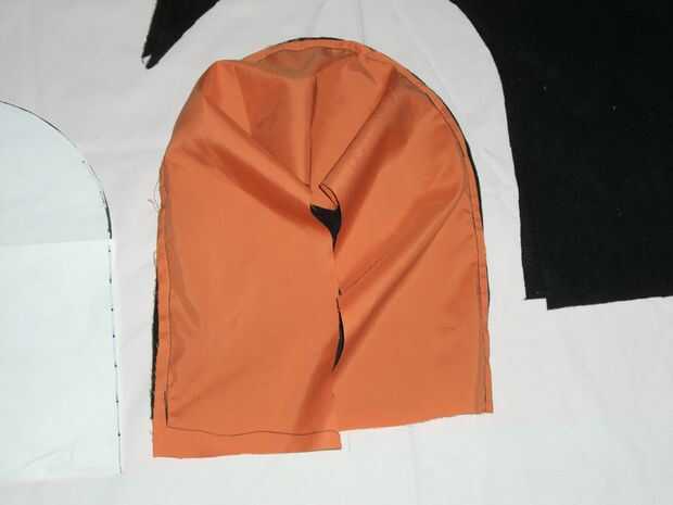 Si su material tiene dos tipos diferentes de lados, coloque el lado que desee dentro del casco para arriba y la pieza exterior juntos (o revés) y coser los dos lados.