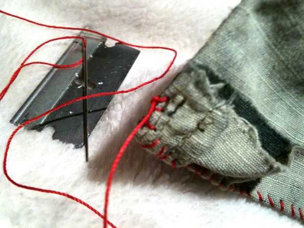 En una tienda de tela necesita comprar hilo de nylon pesado, una aguja y algunos remaches de auto-cierre. Si no puede encontrar hilo que coincida con su ropa, elegir un color de contraste en su lugar. Los materiales pueden costar en cualquier lugar de cinco a diez dólares.