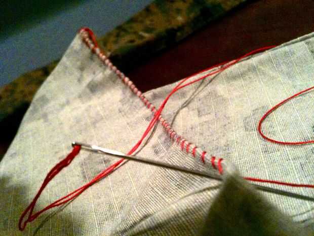 Coser la bolsa de adentro hacia fuera. Hacer las puntadas apretadas y juntas. Y los espacios entre cada puntada de la misma. Coser debe tomar no más de veinte minutos; usted tendrá que hacer un nudo de Plaza en cualquiera de los extremos de la costura.