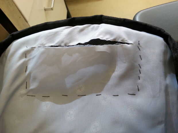 Ahora utilice la hoja de su cuchillo de pluma para cortar abierto el bolsillo tan recto como sea posible. Asegúrese de que sólo corte la primera capa de la tela, no todo el camino. Ahora tenemos que proteger a la tela corte de desgaste sólo a pedazos con el tiempo y uso.
