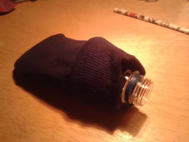 colocamos la funda exterior por encima de todo y llevándola hasta el cuello de la botella. No. para colocar bien el interior por si se ha movido, podemos empujar desde boquense con un lápiz, palillo chino o similar.