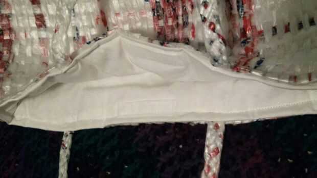 Coser alrededor del borde superior de la bolsa, asegurando el forro y manillas.