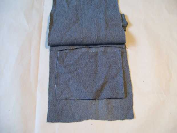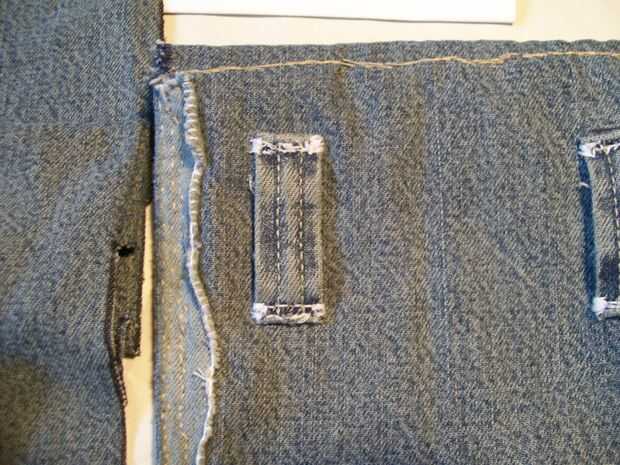 En segundo lugar, tomar una tira de dril de algodón y colocar entre 2 y 3 donde desea colocar el cinturón de bucles. Asegúrese de que es alto y lo suficientemente amplia como para ser incluidos en la costura.
