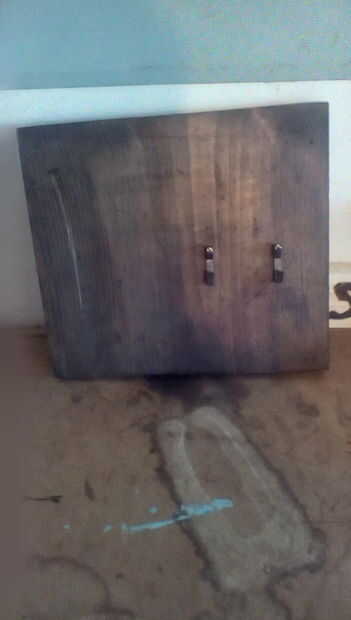 Usando dos clavos o tornillos Coloque los dos ganchos en la parte posterior de madera, (este se utilizará como los soportes de la correa)